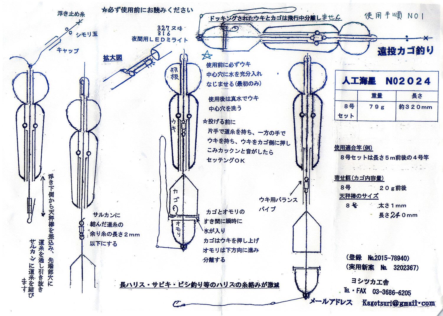 ⑦回収時、浮き、カゴ、天平棒は直線状となります。